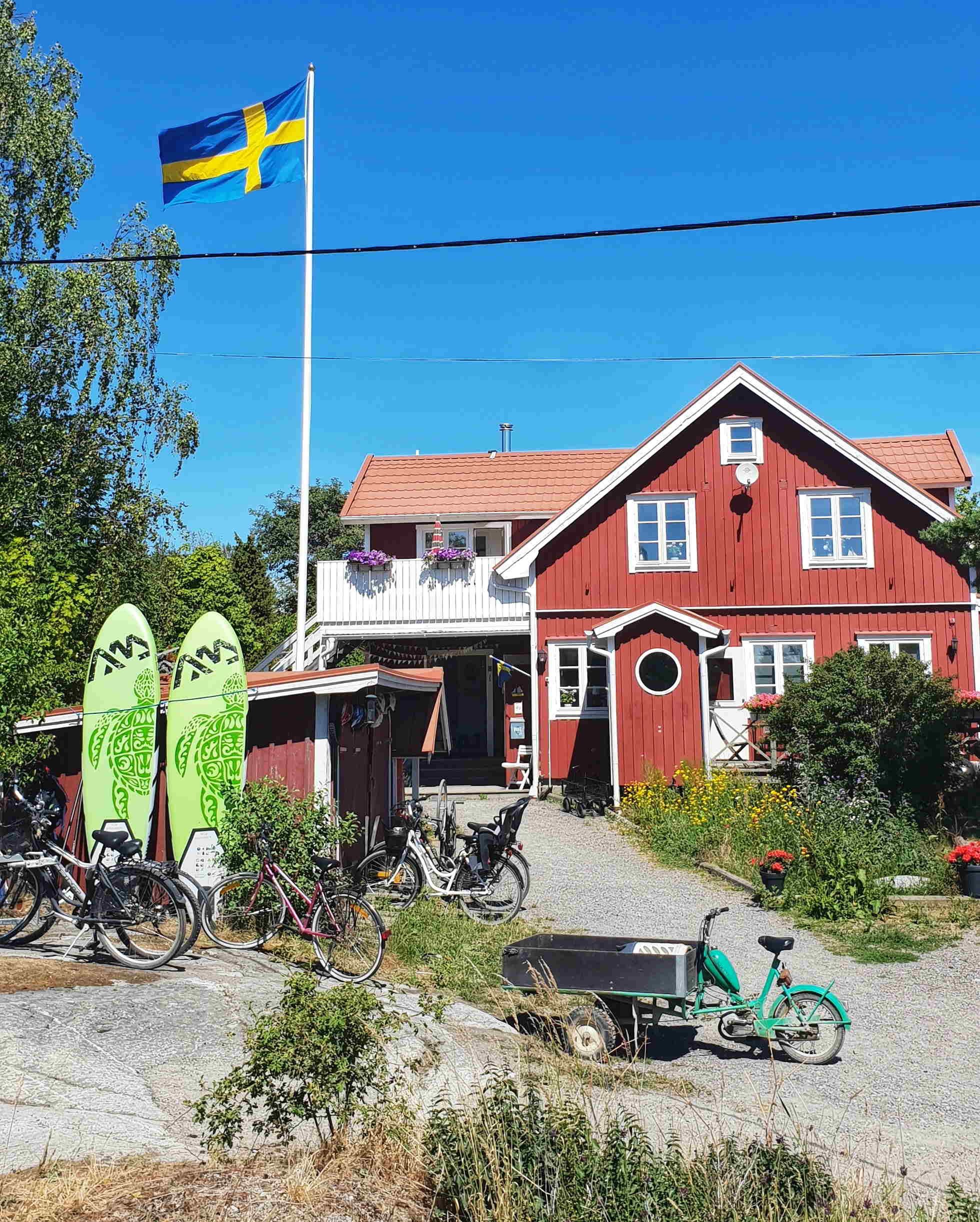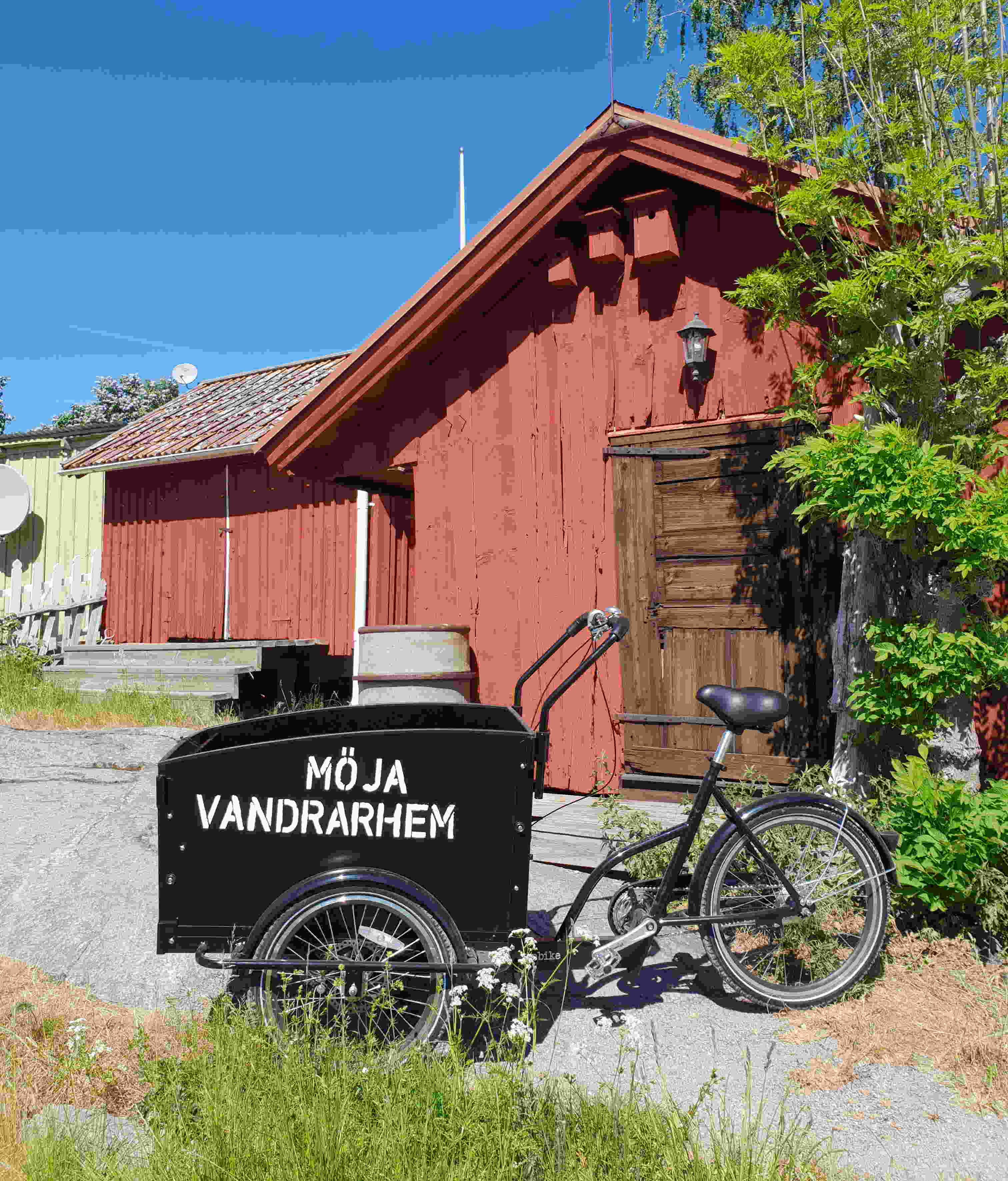 Möjas landsväg är perfekt för en cykeltur, det finns även barncyklar och hjälm ingår såklart.