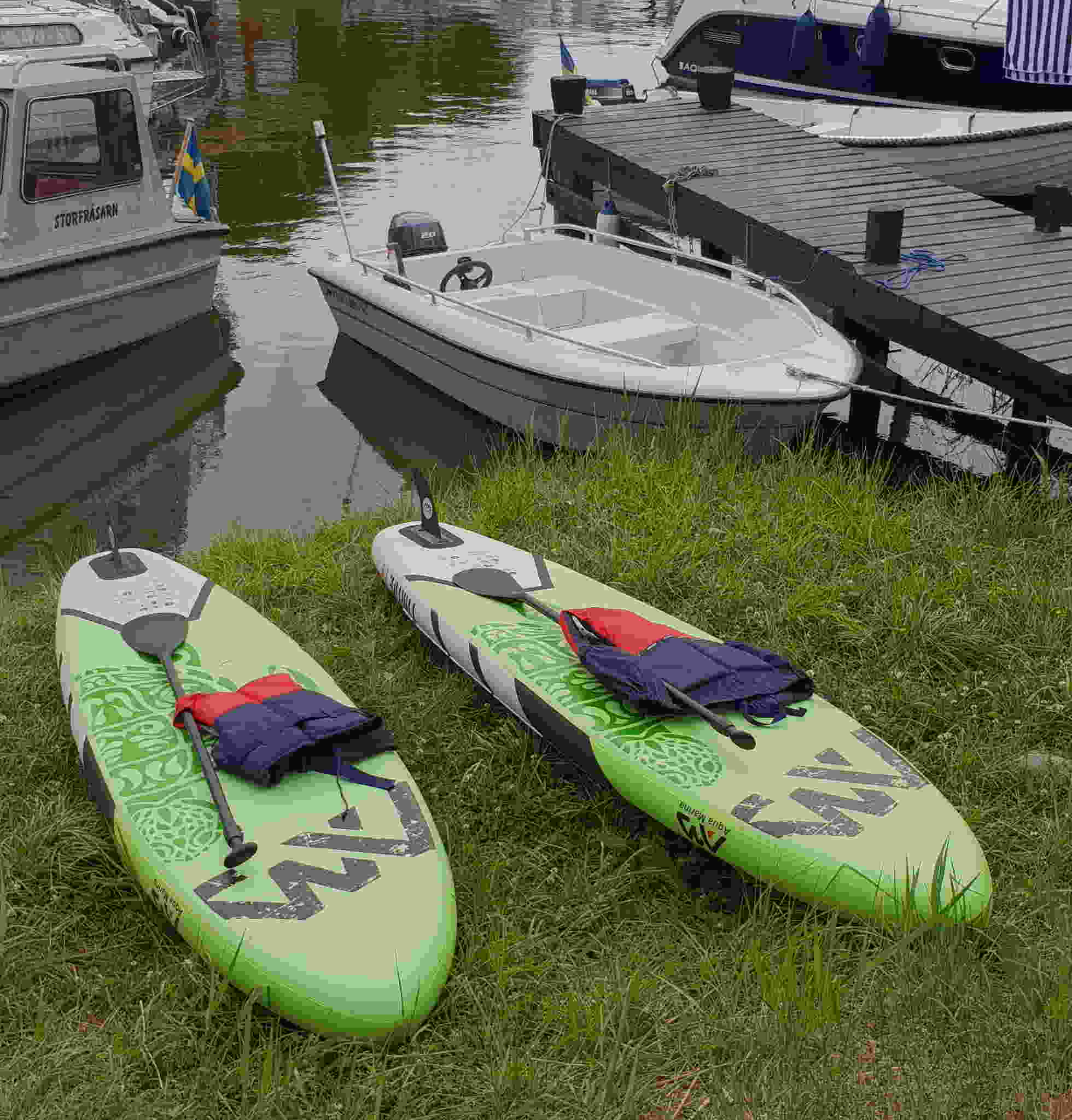 Vill du ut på havet har vi stand up paddle (SUP) och från Kyrkviken kan du paddal genom vackra Möja ström eller till Södermöja.